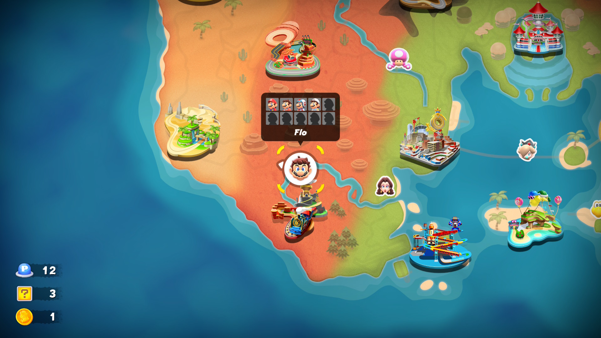 Les trois zones géographiques principales concentrent la majorité des panneaux recherchés. Circuit Mario Bros offre un point de départ accessible. Mont Tchou Tchou propose des défis en altitude stimulants. Désert du Soleil teste la patience avec ses étendues sablonneuses.