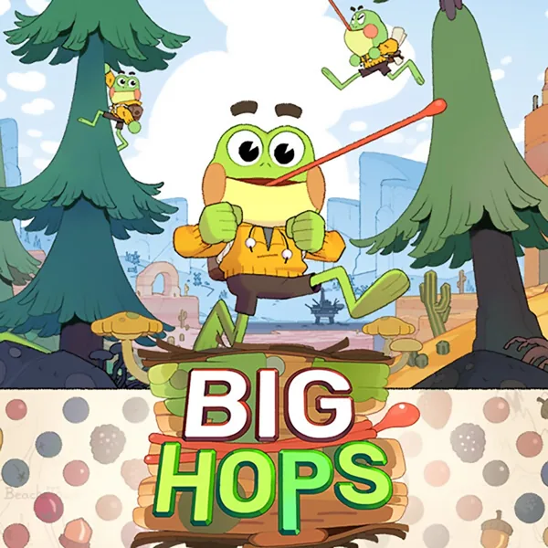 Big Hops est un jeu de plateforme mêlant action et aventure, développé et édité par Luckshot Games. Il sort en Europe le 12 janvier 2026 sur PC Windows, PlayStation 5 et Nintendo Switch. Le joueur incarne Hop, une jeune grenouille enlevée par un esprit farceur nommé Diss. Pour retrouver sa famille, Hop doit assembler les pièces d’un dirigeable en parcourant divers mondes, chacun proposant sa propre histoire, ses personnages et ses enjeux.